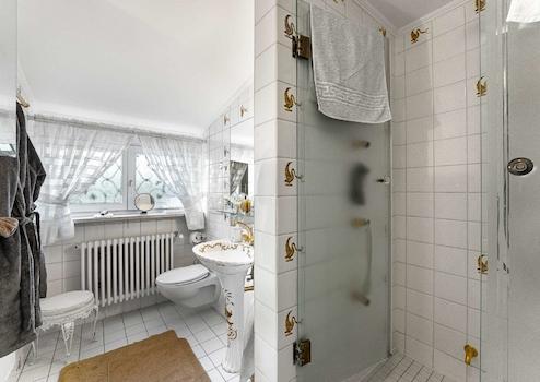 Zwei Badezimmer im Obergeschoss – eines mit Dusche, eines mit Badewanne