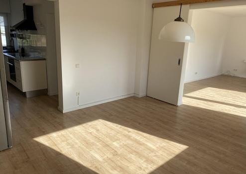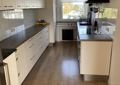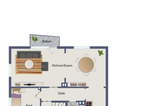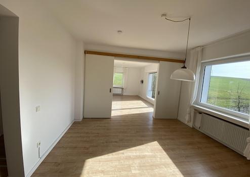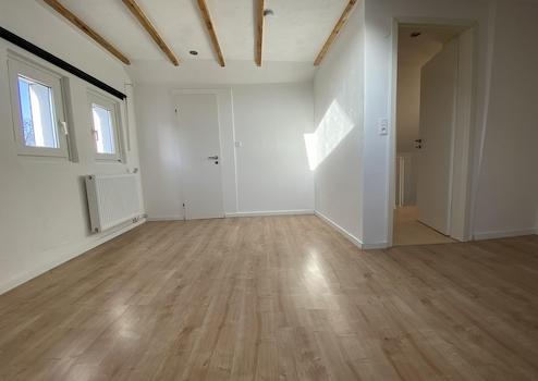 Die rennovierte Fünfizimmerwohnung mit ca. 95qm befindet sich im Obergeschoss und Dachgeschoss eines gepflegten Zweifamilienhaueses. Zu der lichtdurchfluteten Wohnung gehören im Obergeschoss ein Wohnzimmer mit Balkon, eine Küche, ein Esszimmer, Kinderzimmer oder Büro, Badezimmer mit WC und einer barrierearmen Dusche.