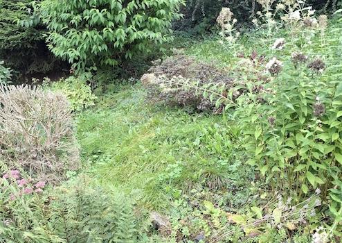 Es sind zwei Zufahrten, Garage und im hinteren Teil des Grundstücks ein Garten mit etwas Hanglage vorhanden.