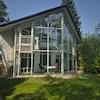 Das passive Solarhaus besticht durch sein außergewöhnliches Design. Das Highlight des Hauses ist der 18 Quadratmeter große Sonnenhof mit seiner bis zu 7,50 m hohen Glasfassade. 2 Balkone und ein Erker reichen in den Sonnenhof hinein.
