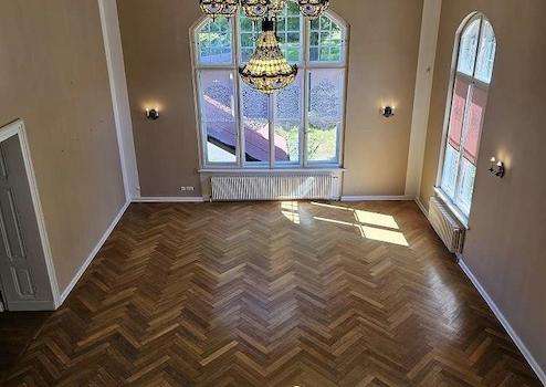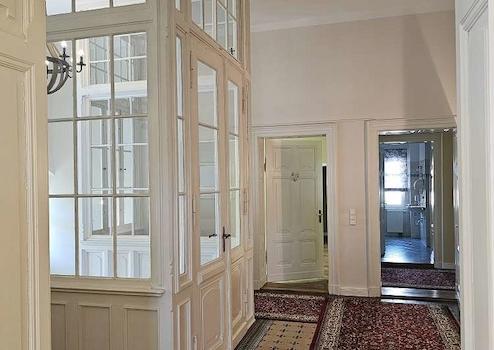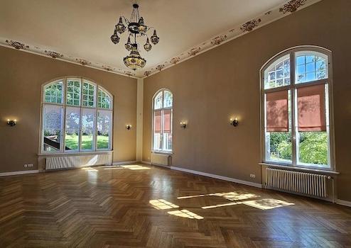 Die eindrucksvollen historischen Räume zeichnen sich durch große Fensterflächen, hochwertige Parkettböden, hohe Decken sowie stilvolle, großzügige Flügeltüren aus, die dem Gebäude einen besonderen Charme verleihen.