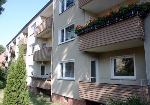 Die Wohnung befindet sich im Hochparterre eines Mehrfamilienhauses.