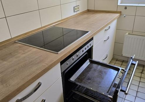- moderne Einbauküche (im Mietpreis enthalten) mit Herd und neuem Geschirrspüler, neue Dunstabzugshaube (2024). Die Küche ist im Mietpreis enthalten. Es erfolgt keine gesonderte Berechnung
