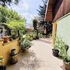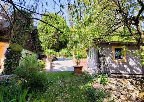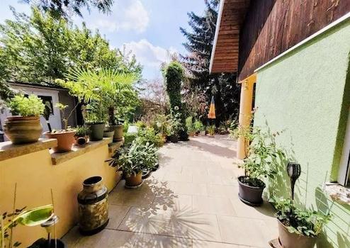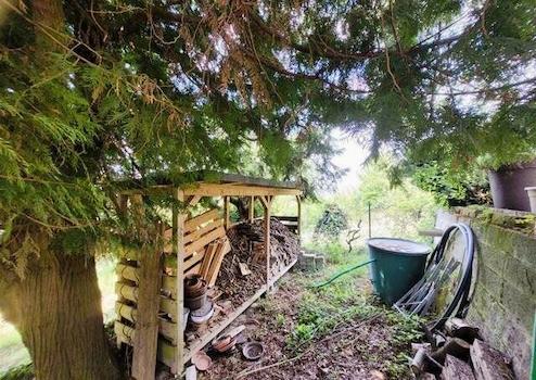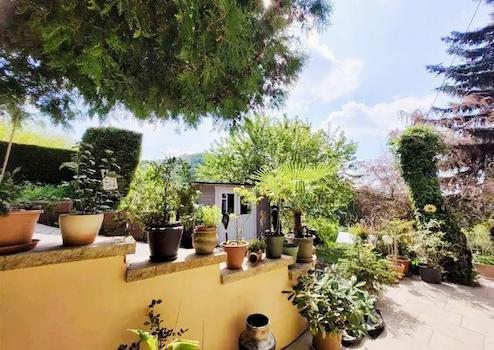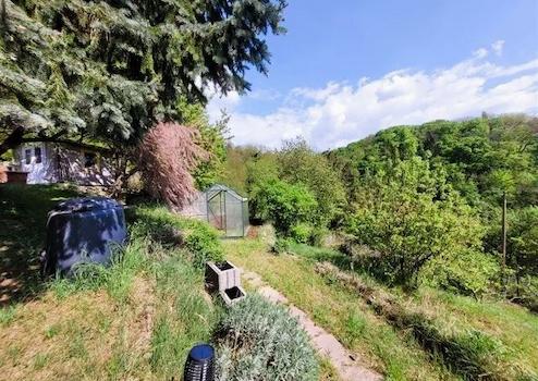 Auf dem Grundstück befinden sich eine Terrasse, ein Gartenhaus, ein Gewächshaus sowie ein Obst und Kräutergarten mit Kirsche, Feige, Birne, Apfel, Quitte und einem großen Walnussbaum.