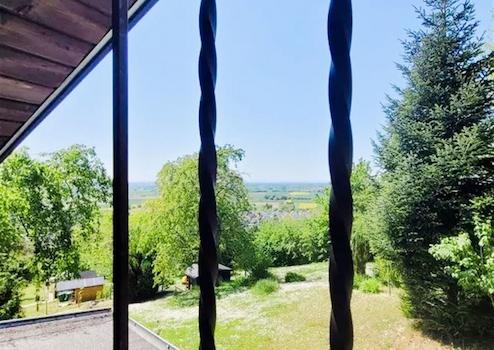 Die Immobilie liegt auf einem bewaldeten Hügel mit weiter Fernsicht über die Rheinebene bis Mannheim, Ludwigshafen und in die Pfalz. In der Umgebung befinden sich zahlreiche Wanderwege, Naturflächen und Freizeitmöglichkeiten.