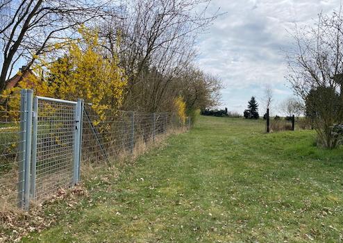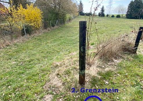 Das Baugrundstück ist ab sofort zum Kauf erhältlich und ermöglicht Ihnen die Verwirklichung eines maßgeschneiderten Zuhauses, das ganz Ihren persönlichen Vorstellungen entspricht. Das Baugrundstück ist bereits an drei Seiten eingefriedet. Von der Straße aus gesehen, befindet sich an der linken Seite eine doppelte Einfriedung. Der innere Wildzaun mit Pforte, ca. 66 m lang, ist rel. leicht zu demontieren und kann an anderer Stelle vom Käufer gesetzt werden, um die Einfriedung zu komplettieren. Von der Straße betrachtet rechts gelegen, besteht für den neuen Eigentümer eine Zaunpflicht mit 123 cm Höhe analog zur Front gem. insgesamt vier Vermessungspunkten/Grenzsteinen von der Front rechts über vier Grenzsteine bis zur hinteren Einfriedung (Holzstab, orange).