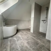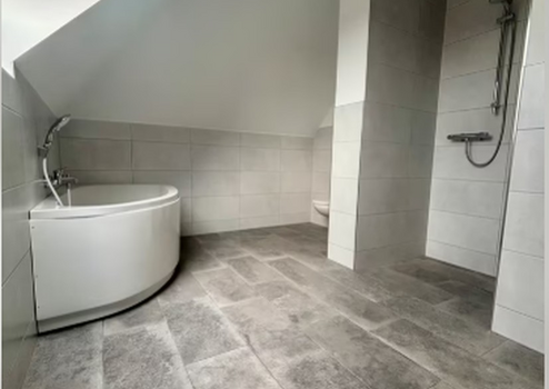 Das neu sanierte Badezimmer mit moderner, ebenerdiger Dusche – stilvoll, zeitgemäß und komfortabel.