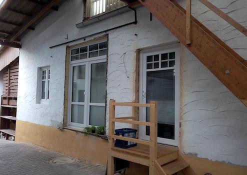 Die angebotene Wohnung befindet sich auf einem ehemaligen Weingut und wurde aus der früheren Weinkelterei zu Wohnraum ausgebaut.