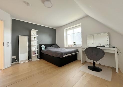 Die Treppe führt weiter in das ausgebaute Dachgeschoss/die Galerie. Dieser Bereich eignet sich ideal als Homeoffice, Gästezimmer oder kreativer Rückzugsort. Beheizt wird die Galerie aktuell über eine elektrische Heizung; Anschlüsse für einen Heizkörper sind bereits vorhanden.