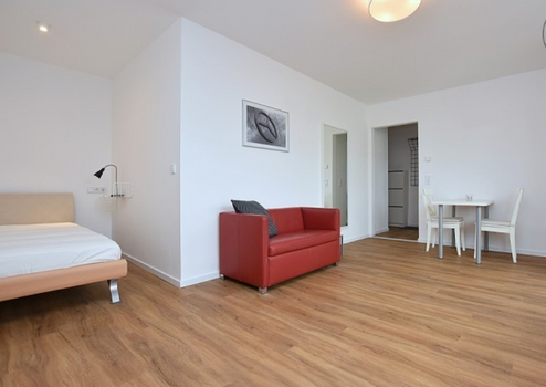 Die Wohnfläche von ca. 35 m² verteilt sich auf ein helles Wohn-/Schlafzimmer, eine separate