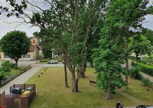 Es gibt einen große Gartengemeinschaftsfläche auf dem Grundstück.