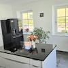 -Große, moderne Küche (18,59 m²) mit hochwertigen Geräten und Kochinsel inkl. Bora-Induktionskochfeld.