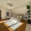 Im Obergeschoss finden sich die Schlafräume. Der Master-Bedroom spiegelt die Bedeutung der Eigentümer und die Großzügigkeit des Anwesens wieder. Das große Schlafzimmer mit traumhaften Ausblick ins Grüne, eigenem Balkon und en-suite Masterbad lässt keine Wünsche offen. Weiterhin finden sich vier Schlaf-, Bastel-, oder Hobbyzimmer und ein weiteres vollwertiges Bad mit Wanne und Dusche. Zwei der Schlafzimmer sind mit Velux Cabrio-Fenstern ausgestattet, die wunderbaren Lichteinfall ermöglichen und geöffnet den Raum nochmal vergrößern. Quasi wie ein eigener Balkon. Lohnt sich anzuschauen und zu erleben. Ein tolles Raumgefühl.