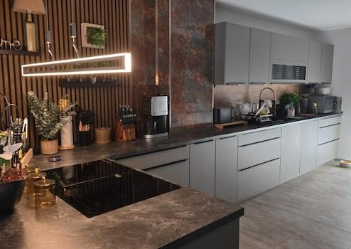 -Küche, Ess-, Wohnbereich mit hochwertiger und neuwertiger Marken Einbauküche, Bodenbelag hochwertiger Vinylboden alles Neu verlegt 2024