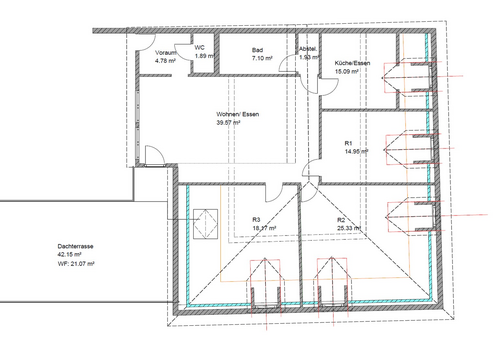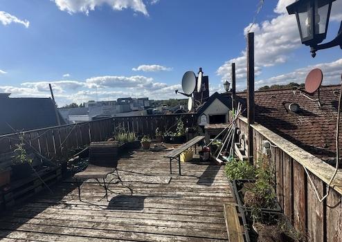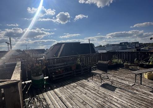 **Der Belag der Dachterrasse wird erneuert. Bis zur Fertigstellung ist die Nutzung der Terrasse eingeschränkt, weshalb die Miete vorübergehend um 200 € reduziert ist (1.950 € statt 2.150 €).**