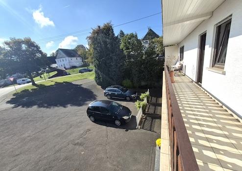 - Parkraum: ca. 12 Stellplätze auf befestigtem Eigentum, weitere im Bereich der Wiese möglich, zusätzlich ca. 6–7 auf öffentlichem Parkplatz angrenzend, eine Garage