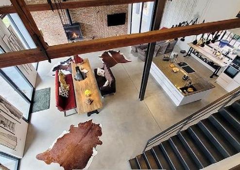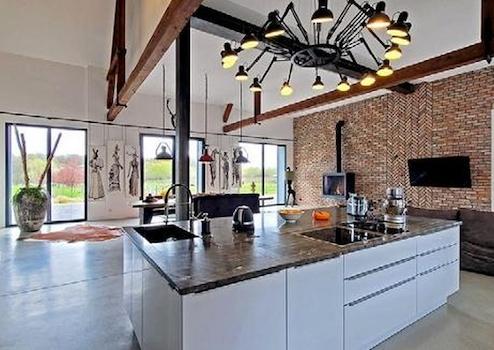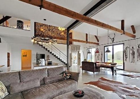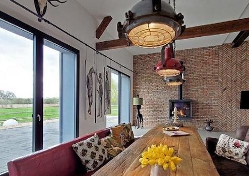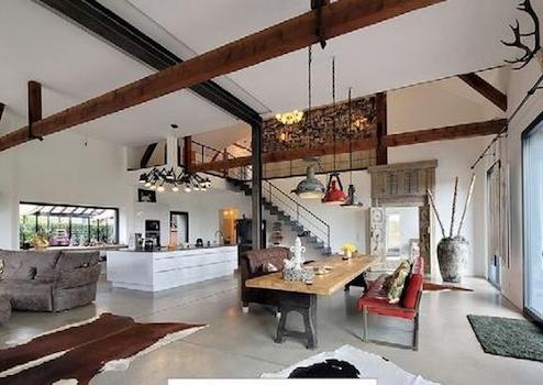 Dachbalken, freiliegendem Klinker und einer imposanten