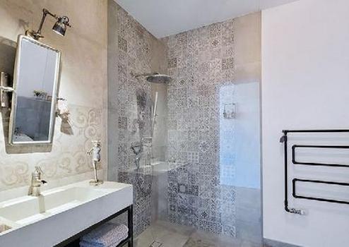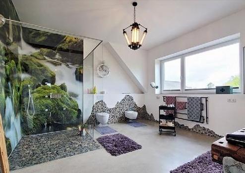 stilvoll eingerichtetes Duschbad am Ende der Diele komplettiert