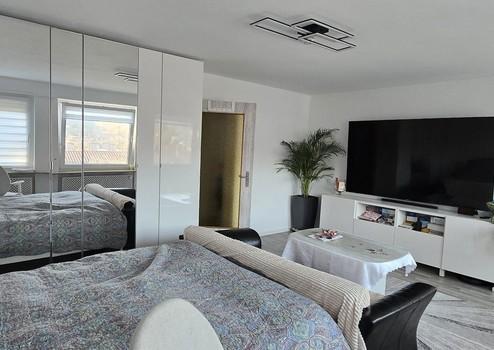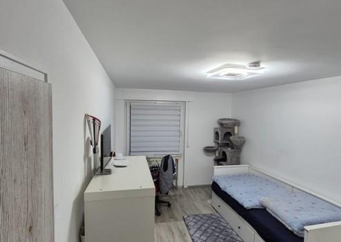 Sie verfügt über zwei jeweils rund 15 m² große Schlafzimmer, eines Richtung Süden (Garten), das andere Richtung Norden (Straße). Vom ca. 25 m² großen Wohnzimmer gelangt man auf den sonnigen Balkon mit herrlichem Blick. Zur Wohnung gehören außerdem eine Küche, ein Badezimmer mit WC, ein Gäste-WC, ein Kellerraum (ca. 4 m²) und ein gestalteter Büro-/Hobbyraum mit großem Dachfenster (ca. 12 m²).