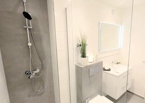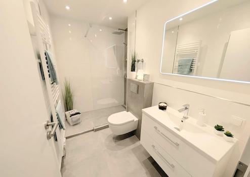 - modernes Badezimmer mit Walk-in-Regendusche