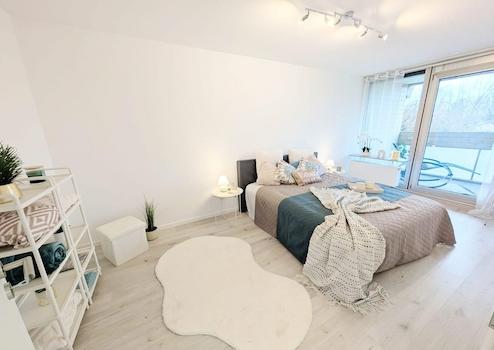 Die Wohnung überzeugt durch ein modernes, offenes Wohngefühl und eine Ausstattung, die sofortiges Einziehen möglich macht – ganz ohne Renovierungsaufwand. Bodentiefe Fenster sorgen für viel Tageslicht und eine freundliche Wohnatmosphäre. Ein besonderes Highlight ist der große, überdachte XXL-Balkon mit Blick ins Grüne, der den Wohnraum ideal erweitert.