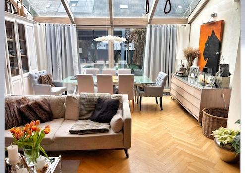 Dieses gepflegte Reihenmittelhaus aus dem Jahr 1972 präsentiert sich als idealer Ort für Familien, die Wert auf eine gelungene Kombination aus etablierter Bausubstanz und modernen Erweiterungen legen. Das Herzstück bildet der großzügige, genehmigte Anbau, der das Wohnzimmer erweitert und zusammen mit dem Wintergartenanbau