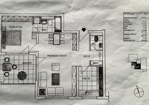 Die Wohnfläche beträgt laut Grundriss ca. 64 qm. Die Wohnung befindet sich in einem freistehenden 4-geschossigen Zwölf-Parteien-Wohnhaus mit Unterkellerung und nicht ausgebautem Dachgeschoss. Es gibt einen Aufzug. Das Haus wurde 1997 in massiver Bauweise errichtet. Zur Wohnung gehört ein eigener abschließbarer Kellerraum mit ausreichend Stellfläche und eine eigene Garage. Im Keller befinden sich neben dem Heizungskeller eine gemeinschaftlich genutzte Waschküche und ein Fahrradkeller.