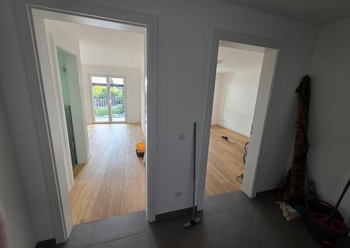 Ausstattung: Personenaufzug, Elternzimmer mit intelligenten Badezimmer, Offener Wohn-Ess-Küchenbereich, Fußbodenheizung mit WLAN- funktion, Wände in Q4 Oberflächenqualität in weiß, Luftwärmepumpe KfW55, Parkettboden aus Eiche Natur, moderne große Fliesen, Bodengleiche Dusche, GIRA Video-Gegensprechanlagen, 2,10 m hohe Türen in weiß von Markenherstellern, Bodentiefe Fenster mit elektrischen Raffstores von Roma, Waschküche, Sanitärausstattung von Markenherstellern Villeroy&Boch und Grohe, Grohe Regendusche, Zugang mit Fingerscanner für alle Mitbewohner, Keller und einen Stellplatz.
