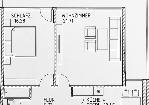 2Raumwohnung mit Wohnküche