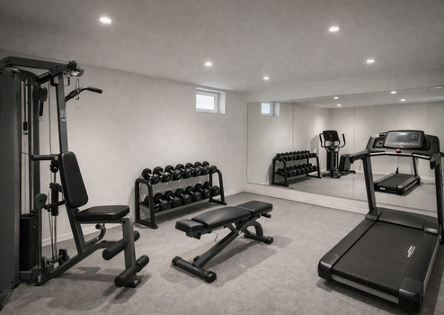 - ein Waschkeller mit Waschmaschinen und Trockner