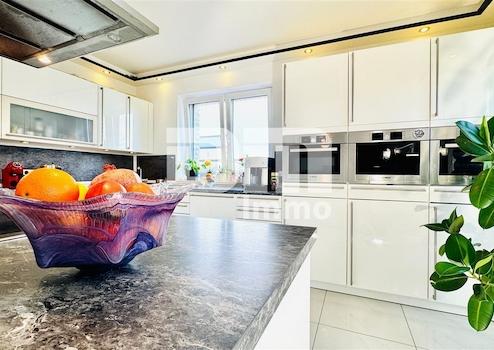 Die hochwertige High Level Einbauküche (BJ 2012) ist perfekt in den Raum integriert.