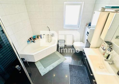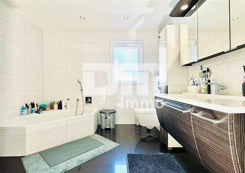 Das Masterbad ist eine Wellness-Oase mit Badewanne, bodenbündiger Dusche und Handtuchwärmer.