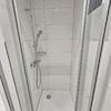 Das angrenzend, geräumige und stilvoll geflieste Duschbad verfügt über eine großzügige, moderne Dusche sowie hochwertige Sanitärelemente.