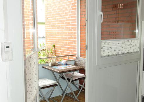 2019 wurde die Loggia mit einem neuen Holzfußboden und neuem Mobiliar ausgestattet. Sie ist perfekt nach Westen ausgerichtet.