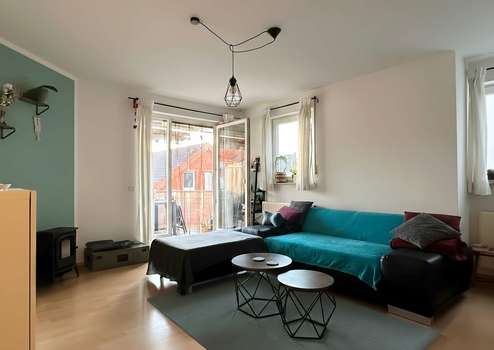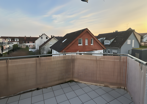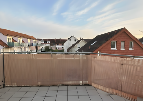 Der Balkon lädt durch seine Ausrichtung zu vielen Sonnenstunden und entspannten Momenten im Freien ein. Direkt angrenzend befindet sich eines der beiden Schlafzimmer, das ebenfalls über einen Zugang zum Balkon verfügt und durch seine Helligkeit eine besonders angenehme Wohnqualität bietet.