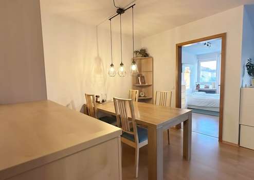 Bereits beim Betreten der Wohnung gelangen Sie in einen praktischen Flur, von dem aus alle Räume komfortabel erreichbar sind. Das helle und großzügig geschnittene Wohnzimmer bildet den Mittelpunkt der Wohnung und bietet Zugang zum sonnigen Balkon mit Südausrichtung. Ein abgegrenzter Essbereich schafft hier zusätzlich eine angenehme Wohnatmosphäre und Platz für gemeinsame Mahlzeiten.