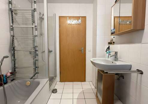 • Tageslichtbad mit Badewanne, Dusche, Waschbecken und WC