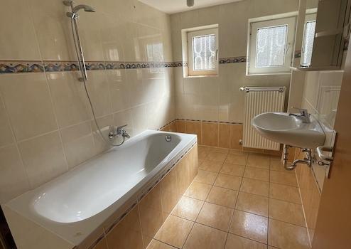 Das Tageslichtbad verfügt über eine Badewanne, das WC ist separat.