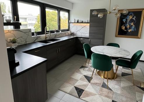 Neue, moderne Einbauküche mit Markengeräten