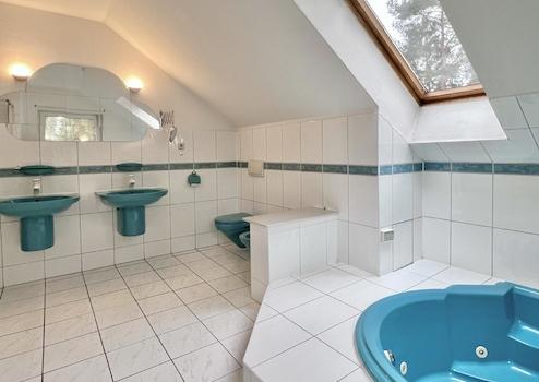 Während das Erdgeschoss mit Büro und Duschbad ideal für das Homeoffice ist, wird das Obergeschoss zur Wellness-Zone: Vier Schlafzimmer gruppieren sich um ein exklusives Bad mit im Boden eingelassener Whirlpool-Wanne.