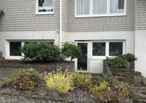 Die Wohnung ist nicht barrierefrei erreichbar. Der Zugang erfolgt über die kleine Terrasse, und ist über 3 Stufen nach unten erreichbar. Der Terrasse ist ein Wendehammer mit Parkplätzen vorgelagert.