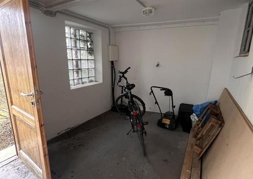 Der Balkon und die großzügige Terrasse bieten direkten Zugang zum privaten Garten. Ein separates Gartenhaus bietet zusätzlichen Stauraum oder Platz für Gäste und Hobbys.