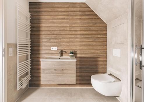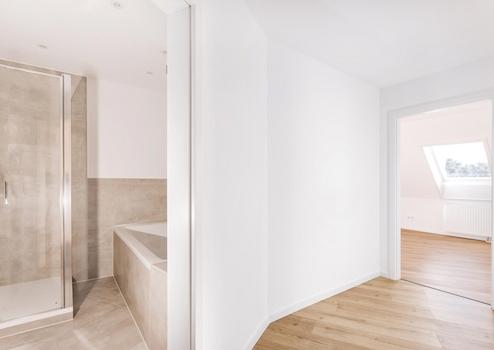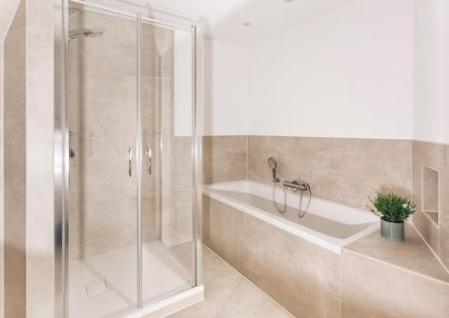 Abgerundet wird das Wohnangebot durch ein hochwertig ausgestattetes Badezimmer mit Badewanne und separater Dusche.