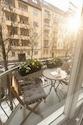 Licht & Luft: Große Fensterfronten und ein sonniger Balkon mit Kiez-Blick.