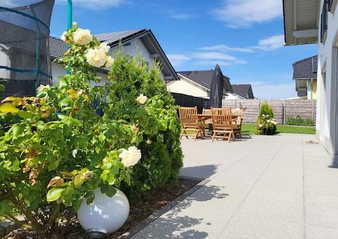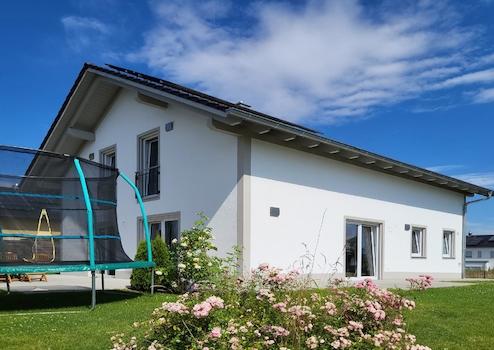 Erleben Sie modernen Wohnkomfort in diesem 2020 fertiggestellten Haus. Lichtdurchflutete Räume und ein offener Wohn- und Essbereich mit hochwertiger Einbauküche schaffen ein einladendes Ambiente. Für zeitgemäßes Wohnen sorgen eine effiziente Luft-Wasser-Wärmepumpe, eine Photovoltaikanlage, Fußbodenheizung und elektrisch bedienbare Rollläden. Eine großzügige Doppelgarage sowie ein ruhiger Garten mit drei sonnigen Terrassen runden das Angebot ab.