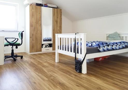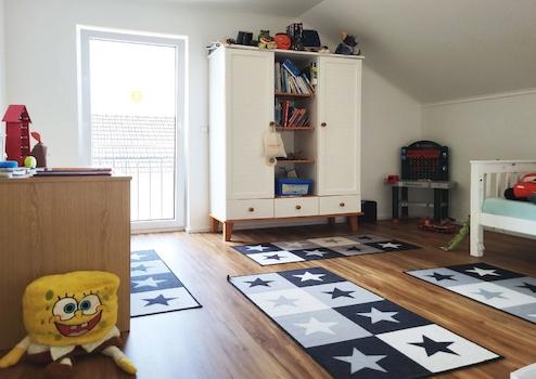 Die Galerie bietet Platz zum Entspannen, während die hellen Kinderzimmer Raum für die Kleinen schaffen. Ein Kaminanschluss verspricht gemütliche Abende im Familienkreis. Der Garten mit seinen Terrassen lädt zu Aktivitäten im Freien oder erholsamen Stunden in der Sonne ein – eine perfekte Kombination aus Komfort, Raum und Lebensqualität.
