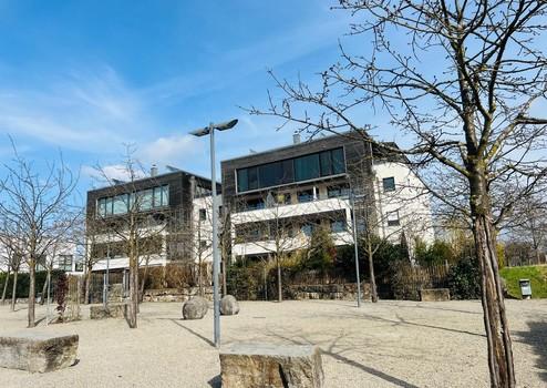 Begehrte Wohnlage Galgenberg in der Waiblinger Kernstadt. Ruhig, grün und dennoch sehr gut angebunden. Bushaltestelle direkt vor dem Haus, Grünflächen und Apfelbäume hinter dem Gebäude, vor dem Haus städtischer Platz mit Zier-Kirschbäumen.
