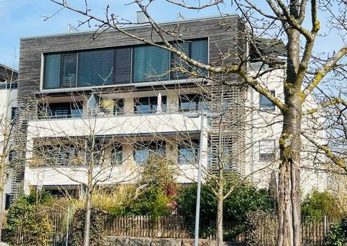Diese außergewöhnliche 4-Zimmer-Eigentumswohnung liegt im 2. Obergeschoss eines modernen Mehrfamilienhauses (Aufzug vorhanden). Die Kombination aus großzügiger Raumaufteilung, hochwertiger Ausstattung, ganztägiger Lichtdurchflutung und unverbaubarer Weitsicht auf drei Seiten macht diese Immobilie besonders attraktiv. Hinzu kommt die besondere Architektur des gesamten Komplexes, die beeindruckt.