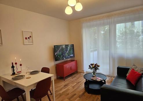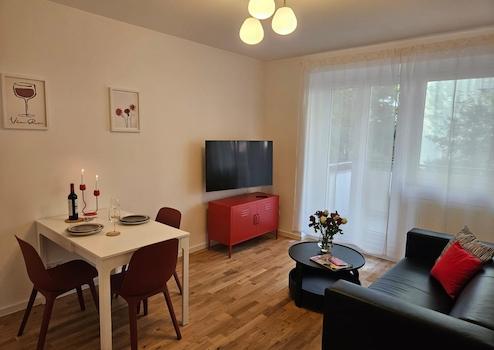 Das frisch renovierte, geschmackvoll eingerichtete 45 m² große Apartment mit Balkon eignet sich ideal für eine Person oder ein Paar. Zur Ausstattung gehören Highspeed-Internet und TV, perfekt für Arbeit oder Freizeit. Zudem stehen eine Waschmaschine und eine komplette Küchenausstattung zur Verfügung. Ebenso werden Handtücher und Bettwäsche gestellt.