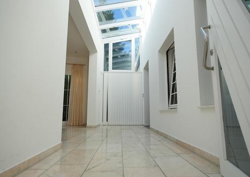 Das Haus bietet lichtdurchflutete Wohnbereiche, beeindruckende Raumhöhen in Teilbereichen sowie ein Wohnambiente, das sowohl modern als auch behaglich ist. Besonders hervorzuheben sind beispielsweise die eleganten Marmorböden im Anbau, teilweise ergänzt durch eine angenehme Fußbodenheizung. Ein überdachter Glasgang verbindet die Gebäudeteile miteinander und bietet abends einen faszinierenden Blick in den Sternenhimmel.